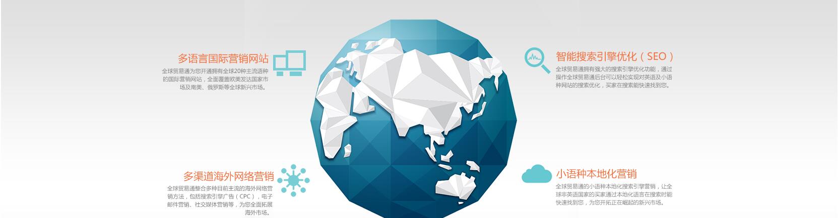 全球贸易通Bossgoo.com是一家成立于2009年的外贸B2B电子商务平台,它颠覆了传统的B2B营销模式,将企业多语言营销网站、多语言B2B贸易平台、 多语言搜索引擎营销、本地化小语种推广服务进行整合,帮助外贸企业开展多渠道营销并取得更好地推广效果。全球贸易通(BOSSGOO.COM)是宁波高新区互联创业电子商务有限公司旗下的全球网络营销和跨境电子商务交易平台,包括全球多语言B2B精准营销平台和跨境电子商务交易平台两大部分。全球贸易通支持全球20大语言,覆盖全球90%的国家和地区,改变传统B2B营销模式,融合企业网站、贸易平台、搜索营销、小语种营销等手段于一体,被行业内誉为B2B3.0模式开创者。全球贸易通支持全球98大语言,覆盖全球90%的国家和地区,改变传统B2B营销模式,融合企业网站、贸易平台、搜索营销、小语种营销等手段于一体,被行业内誉为B2B3.0模式开创者。